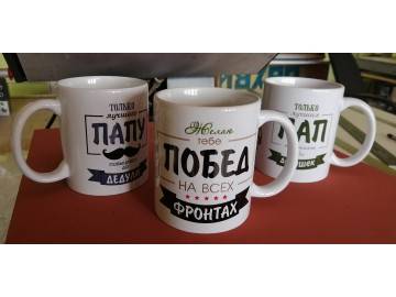 Полноцветная печать на белой цилиндрической кружке Премиум качества, 330мл.