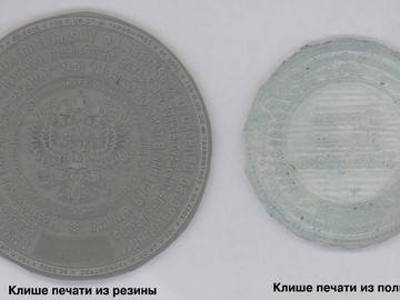 Вот и приходится незадачливым предпринимателям, не дожидаясь этого «судного дня», срочно переделывать свою полимерную печать. Однако, изготовление ее точной копии обойдется уже в круглую сумму, стоит такая услуга уже в 10 раз дороже, т.е. около 2000-2500 рублей. Это сложная художественная работа, ведь новая печать должна в точности повторять все нюансы старой. Порой диву даешься, глядя на расквашенные оттиски неправильной формы и заплывшие цифры реестра регистрационной палаты вполне респектабельных фирм, попавшихся на «полимерную» удочку.